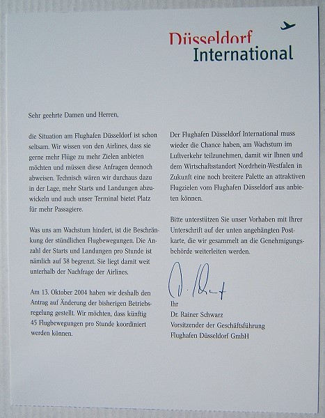 aller Öffentlichkeit dazu aufforderte die Ausweitung des Luftverkehrs am Standort Düsseldorf endlich weiter